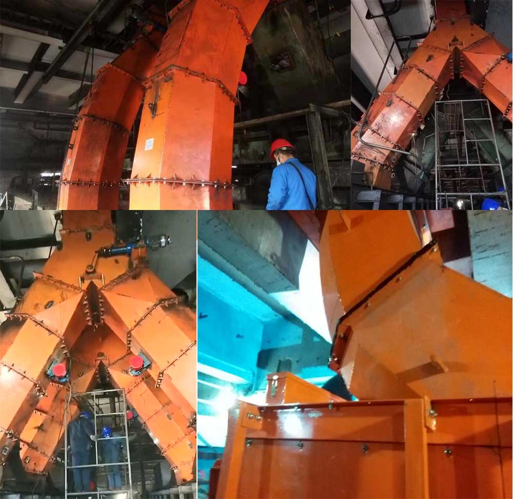 2、流線型的曲線落料管,減小料流與落料管壁之間的沖擊角,減少了濕煤、粘煤的堵塞幾率,保證安全正常生產(chǎn)。